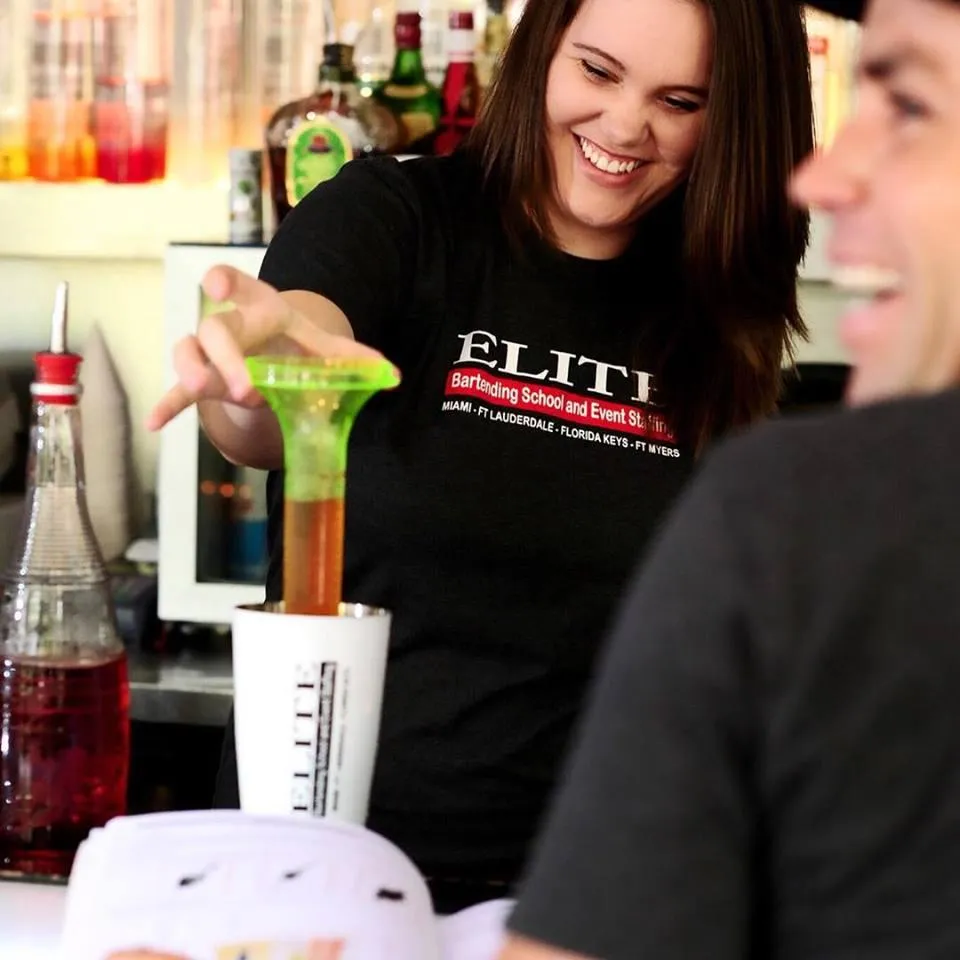 You get hands on training in a real bar! Your State of Florida Certificate, TIPS Certification, ELITE Textbook, ELITE Resume Builder, and access to ELITE ONLY work shifts.